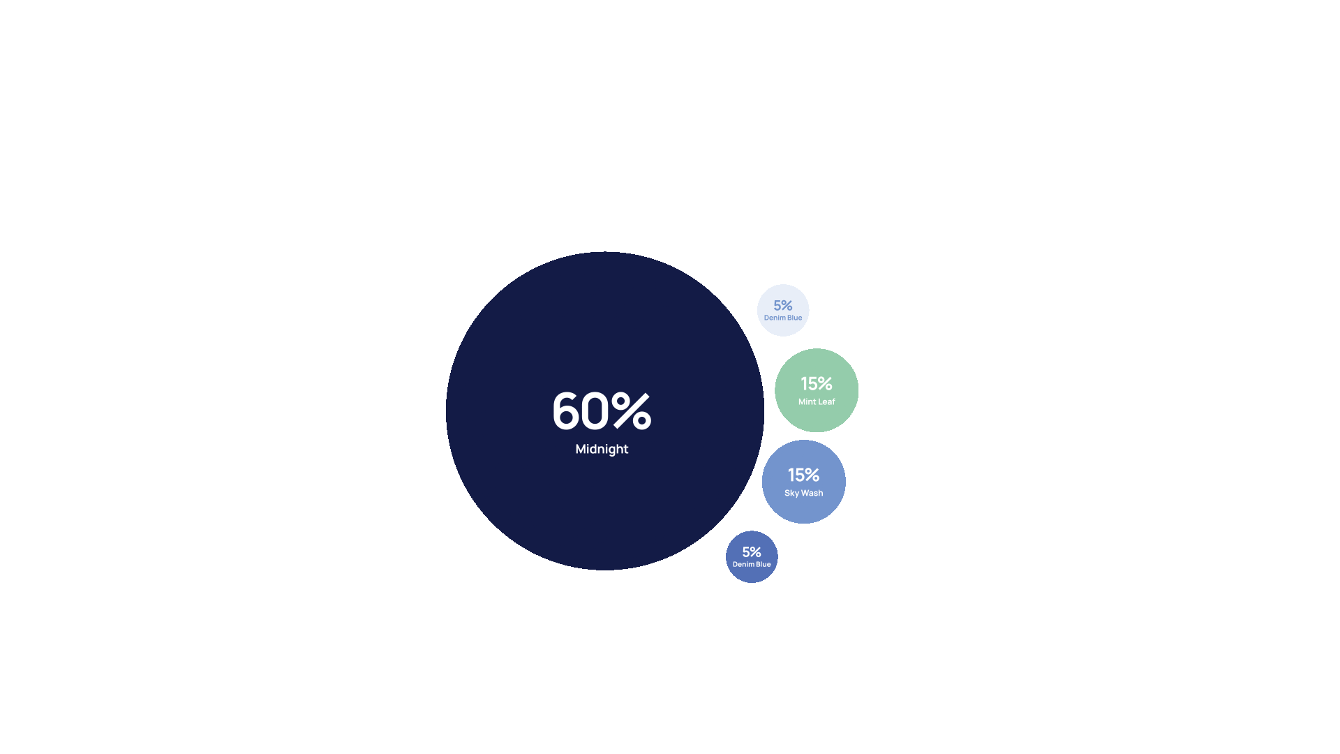 Secondary colors like Mint Leaf and Sky Wash are used in smaller proportions to support and balance the design, adding clarity and visual interest.
